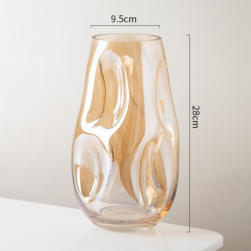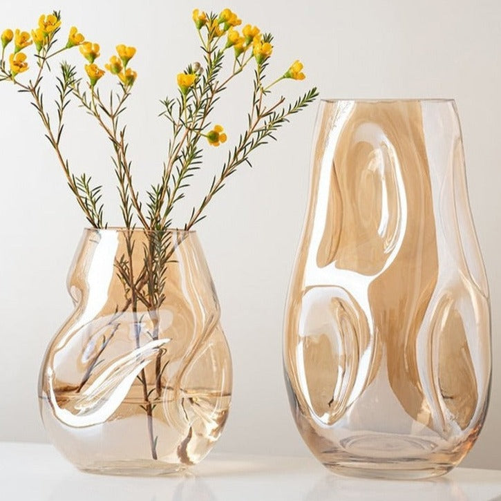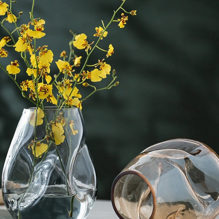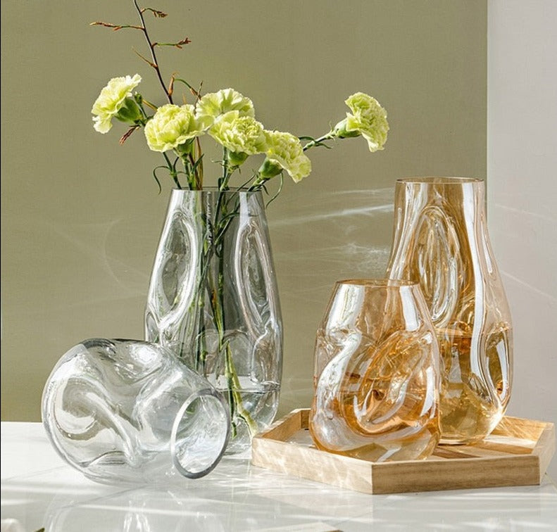 This stunning glass vase boasts a truly unique design. Its irregular shape sets it apart from other vases and adds a touch of sophistication to any room. Crafted from high-quality glass, it's perfect for displaying your favorite flower arrangements. Whether you're looking to add a touch of elegance to your living room or brighten up your bedroom, this vase is a must-have.